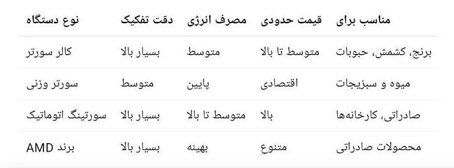 مقایسه انواع دستگاه های سورتینگ موجود در بازار ایران